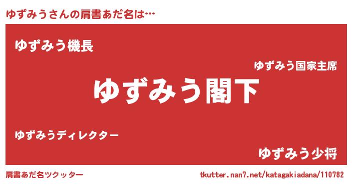 | 意味不明あだ名 | 『自称ゆずみう』『なめこ科ゆずみう属』 |
