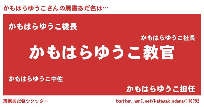 | ヘコむあだ名 | 『かもはらゆうこ(遠い目)』『かもっふぃ~』 |