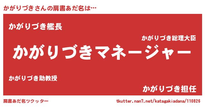 | 男性向けラノベタイトル風あだ名 | 『はたらくかがりづきさま!』 |