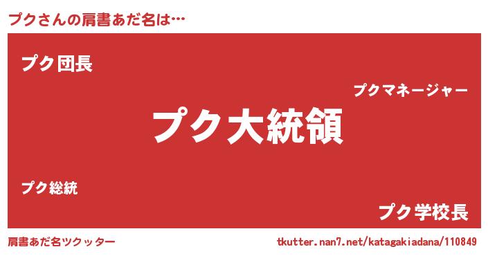 | ヘコむあだ名 | 『なまこ酢』『プクを』『プクにゅー』 |