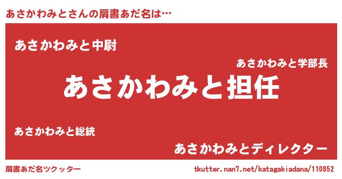 | ヘコむあだ名 | 『あさかわみと(震え声)』『あさにゅー』 |