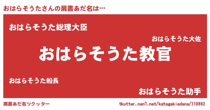 | 意味不明あだ名 | 『住所不定無職おはらそうた(89歳)』 |