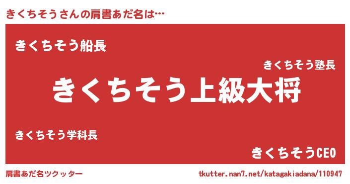 | 男性向けラノベタイトル風あだ名 | 『転生したらきくちそうだった件』 |