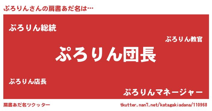 | 女子向けラノベタイトル風あだ名 | 『ぷろりんは平凡を望む』『闇のぷろりん』 |