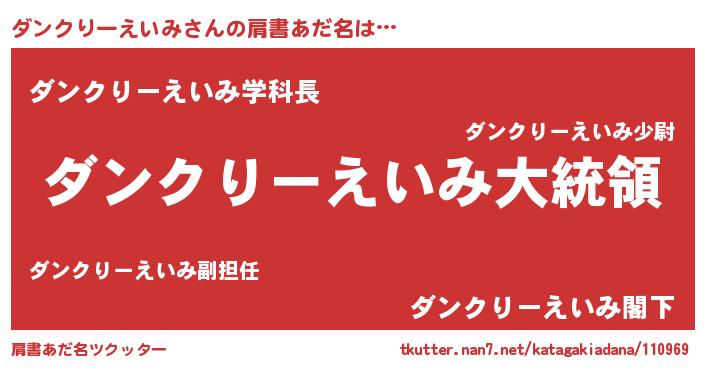 | 欧米人風あだ名 | 『ダンクりーえいみクリステル』 |