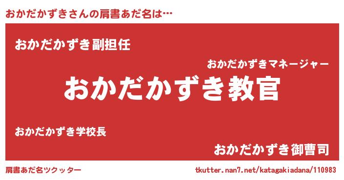 | 男性向けラノベタイトル風あだ名 | 『この素晴らしい世界におかだかずきを!』 |