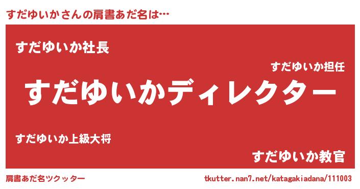 | 男性向けラノベタイトル風あだ名 | 『すだゆいかに滅ぼされるだけの簡単なお仕事です』 |