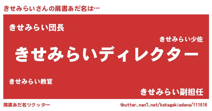 | ヘコむあだ名 | 『きせっ子』『きせみらい(小並感)』 |