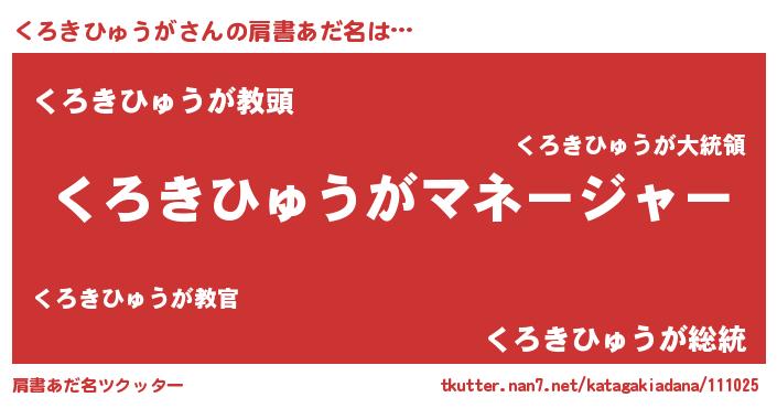 | ヒーロー風カッコイイあだ名 | 『ネオクロキヒュウガ』『仮面クロダー』 |