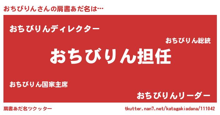 | 男性向けラノベタイトル風あだ名 | 『おちびりんという概念が存在しない退屈な世界 』 |