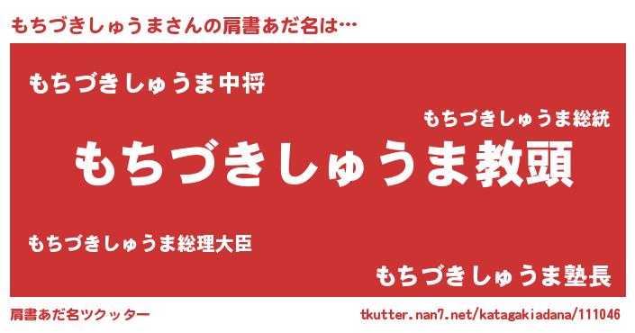 | ヒーロー風カッコイイあだ名 | 『ネオモチヅキシュウマ』『幻影騎士モチ』 |