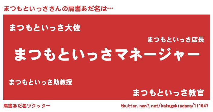 | 男性向けラノベタイトル風あだ名 | 『まつもといっさに滅ぼされるだけの簡単なお仕事です』 |