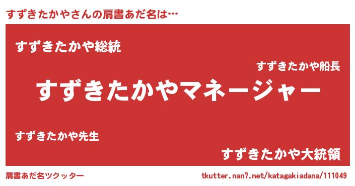 | 意味不明あだ名 | 『自称すずきたかや』 |