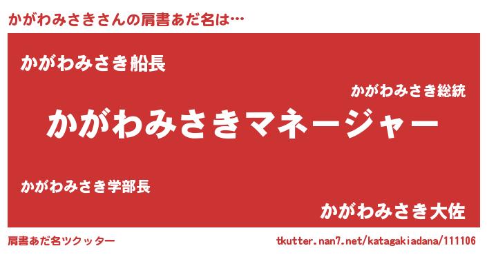 | 男性向けラノベタイトル風あだ名 | 『はたらくかがわみさきさま!』 |