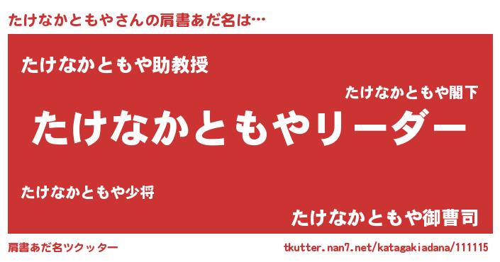 | 意味不明あだ名 | 『とにかく怪しいたけなかともや』 |