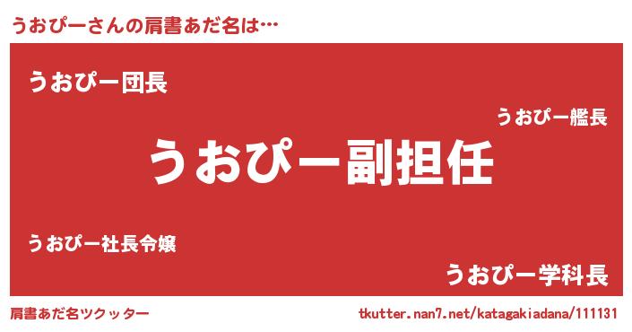 | ヘコむあだ名 | 『うおぴー(遠い目)』『うおお』 |