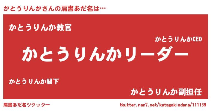 | 男性向けラノベタイトル風あだ名 | 『かとうりんかの嫁は女の子じゃないと思った?』 |