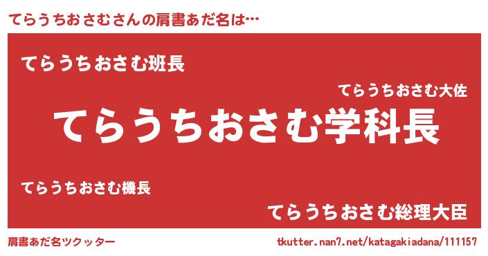 | 男性向けラノベタイトル風あだ名 | 『おまえをオタクにしてやるから、俺をてらうちおさむにしてくれ! 』 |