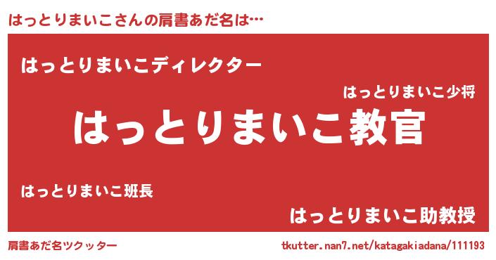 | 男性向けラノベタイトル風あだ名 | 『魔弾の王とはっとりまいこ』 |