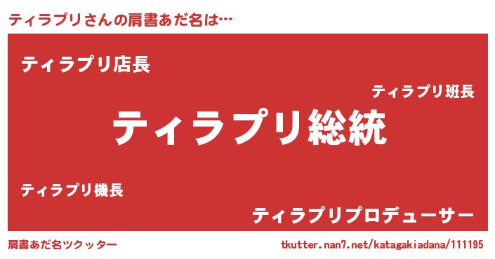 | 意味不明あだ名 | 『自称ティラプリ』『ペロリンティラプリ』 |