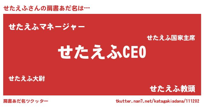 | ヒーロー風カッコイイあだ名 | 『スーパーセタエフ』『ネオセタエフ』 |
