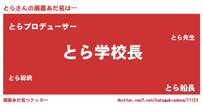 | ヒーロー風カッコイイあだ名 | 『慈愛の使者とら』『ネオトラ』 |