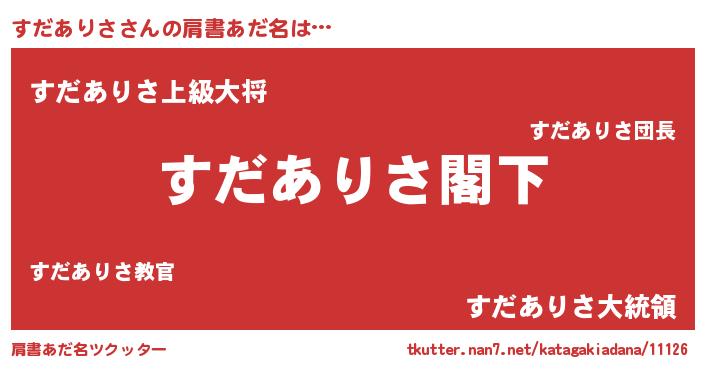 | 意味不明あだ名 | 『自称すだありさ』 |