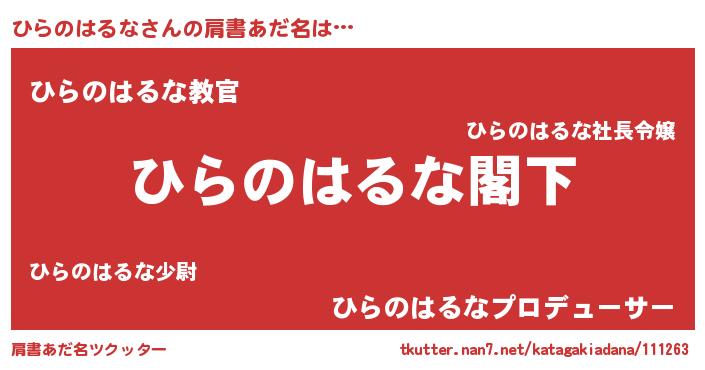 | 意味不明あだ名 | 『自称ひらのはるな』 |