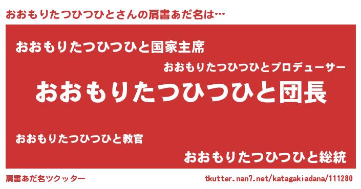 | ポケモン風あだ名 | 『ヒオオモリタツヒツヒト』『オオモダネ』 |
