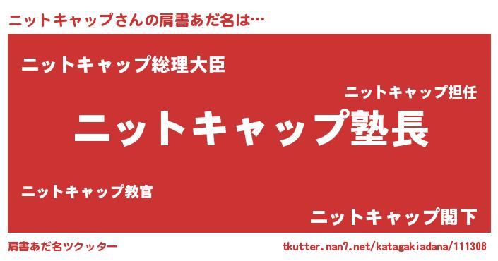 | ヒーロー風カッコイイあだ名 | 『黄金騎士ニッ』『ネオニットキャップ』 |