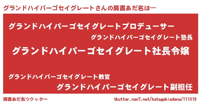 | 恥ずかしいあだ名 | 『プリティーグランドハイパーゴセイグレート』 |