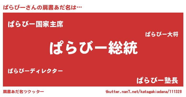 | 意味不明あだ名 | 『自称ぱらびー』『ぱらびーフォーエバー』 |
