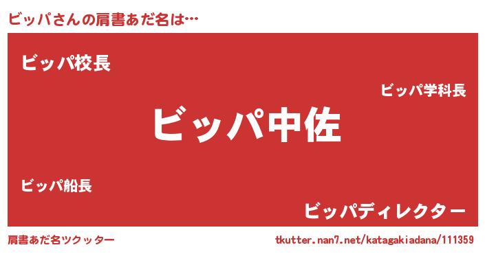 | 女子向けラノベタイトル風あだ名 | 『ビッパの玉の輿計画!』『ビッパ恋絵巻』 |