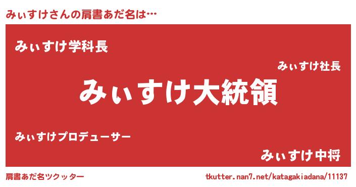 | 欧米人風あだ名 | 『みぃすけクリステル』 |