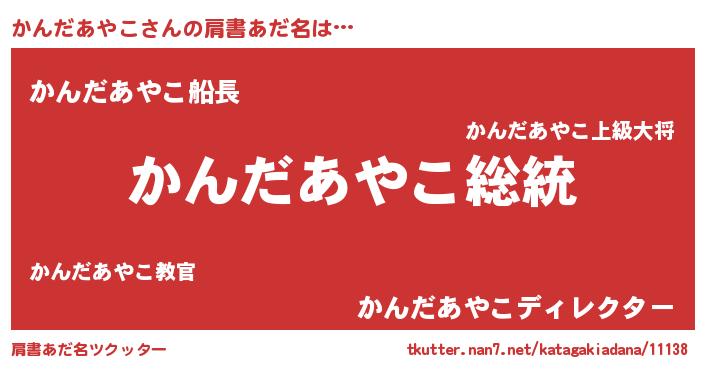 | 男性向けラノベタイトル風あだ名 | 『Re:かんだあやこから始める異世界生活』 |