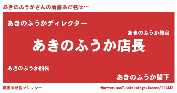| 女子向けラノベタイトル風あだ名 | 『あきのふうか姫と円卓の騎士』 |