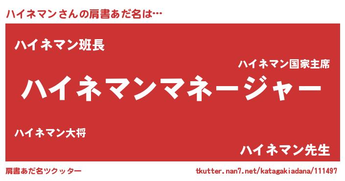 | 意味不明あだ名 | 『とにかく怪しいハイネマン』 |