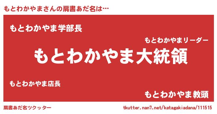 | 男性向けラノベタイトル風あだ名 | 『やはりもとわかやまの青春ラブコメはまちがっている 』 |