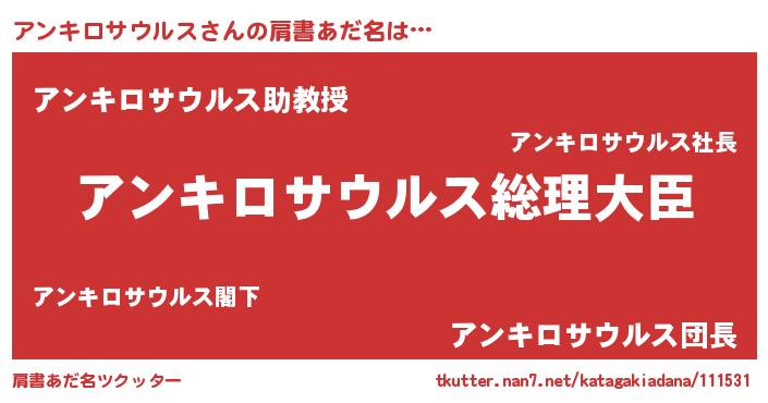 | ファンタジー風あだ名 | 『エターナルアンキロサウルスー』 |