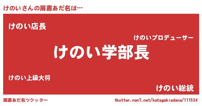 | ヘコむあだ名 | 『けのっふぃ~』『けのい(笑)』 |