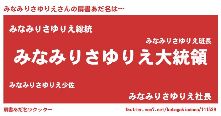 | 意味不明あだ名 | 『みなみりさゆりえフォーエバー』 |
