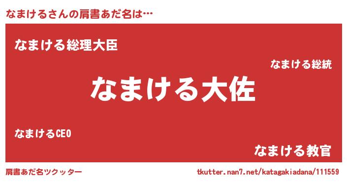 | ポケモン風あだ名 | 『ナマキング』『ナマケダネ』 |
