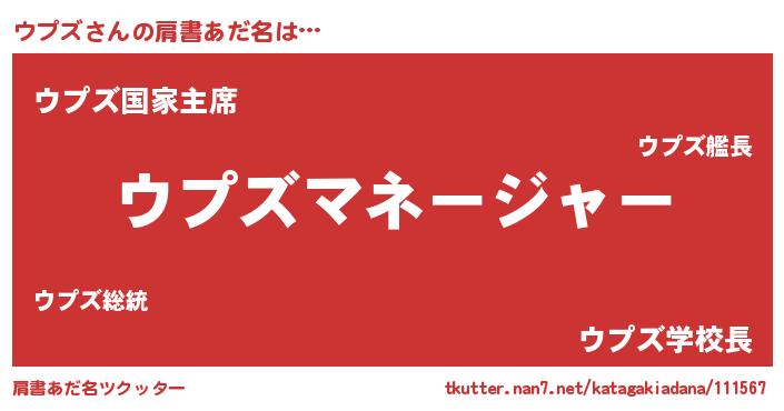 | 男性向けラノベタイトル風あだ名 | 『ウプズに滅ぼされるだけの簡単なお仕事です』 |