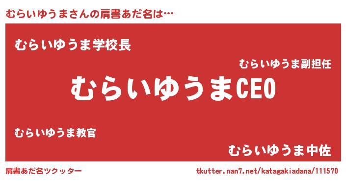 | ヒーロー風カッコイイあだ名 | 『スーパームライユウマ』『仮面ムラダー』 |