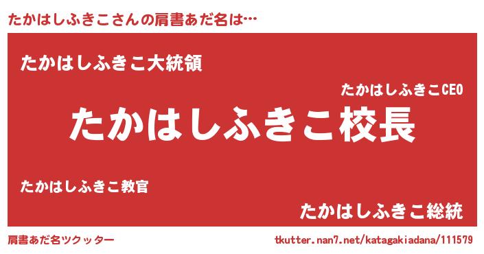 | 女子向けラノベタイトル風あだ名 | 『たかはしふきこの契約王妃』 |