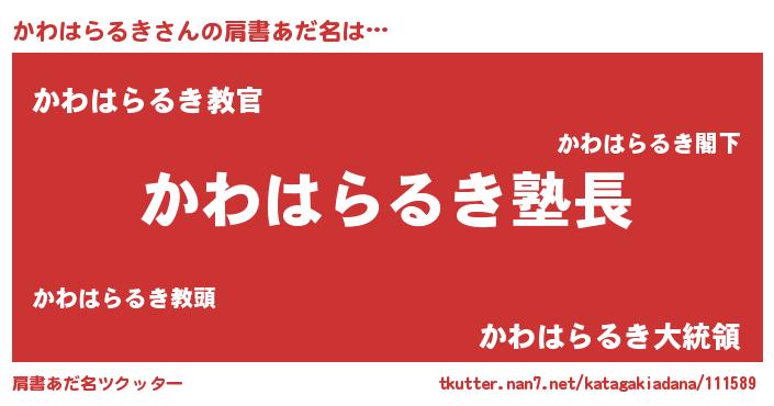 | 胡散臭い通販商品みたいなあだ名 | 『信頼と実績のペンダント…その名も「かわはらるき」』 |