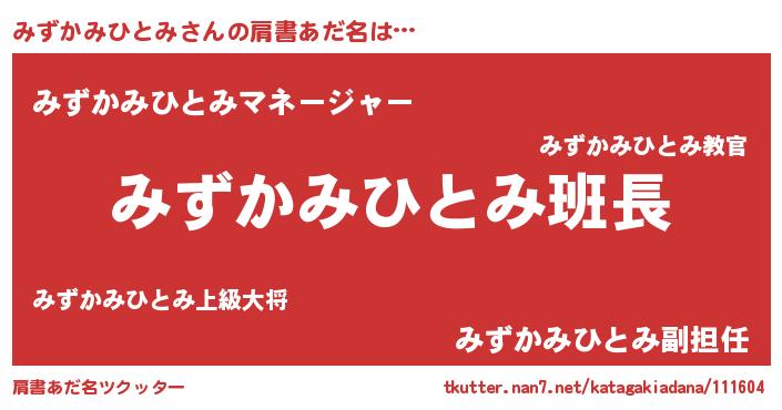 ヘコむあだ名 | 『みず太郎』『みずかみひとみ(笑)』 |