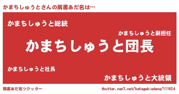 | 胡散臭い通販商品みたいなあだ名 | 『信頼と実績のサプリメント…その名も「かまちしゅうと」』 |