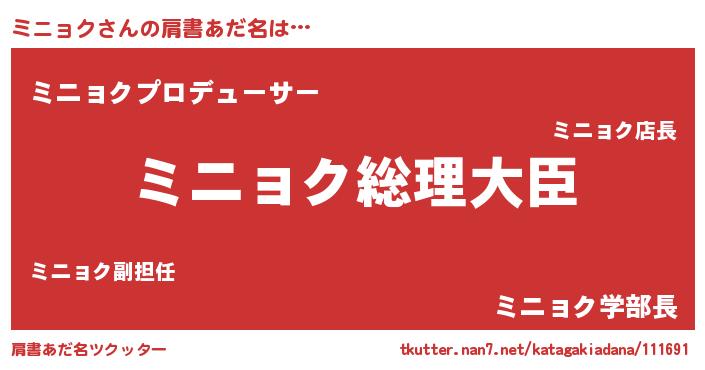 | 男性向けラノベタイトル風あだ名 | 『やはりミニョクの青春ラブコメはまちがっている 』 |