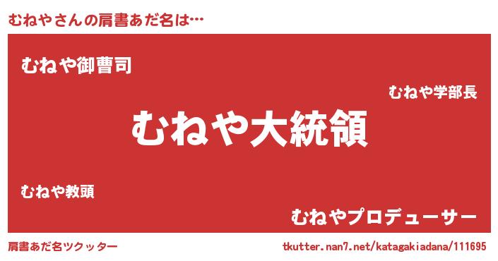 | 男性向けラノベタイトル風あだ名 | 『やはりむねやの青春ラブコメはまちがっている 』 |